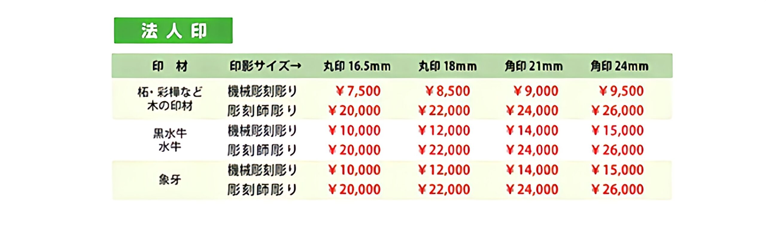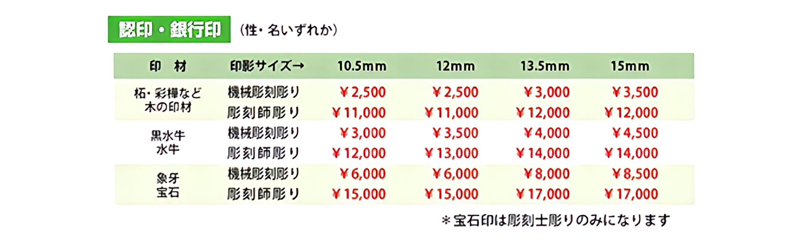 ●再彫刻にあたっての印材についての保証はできません。